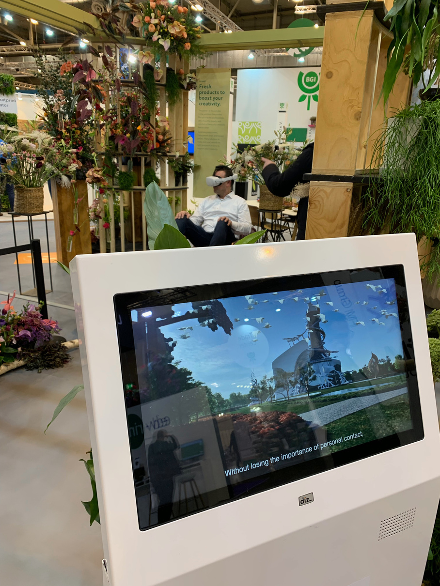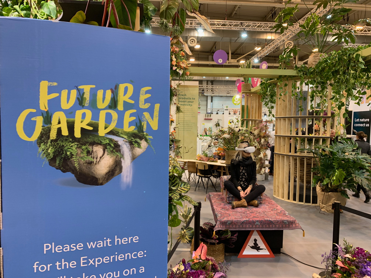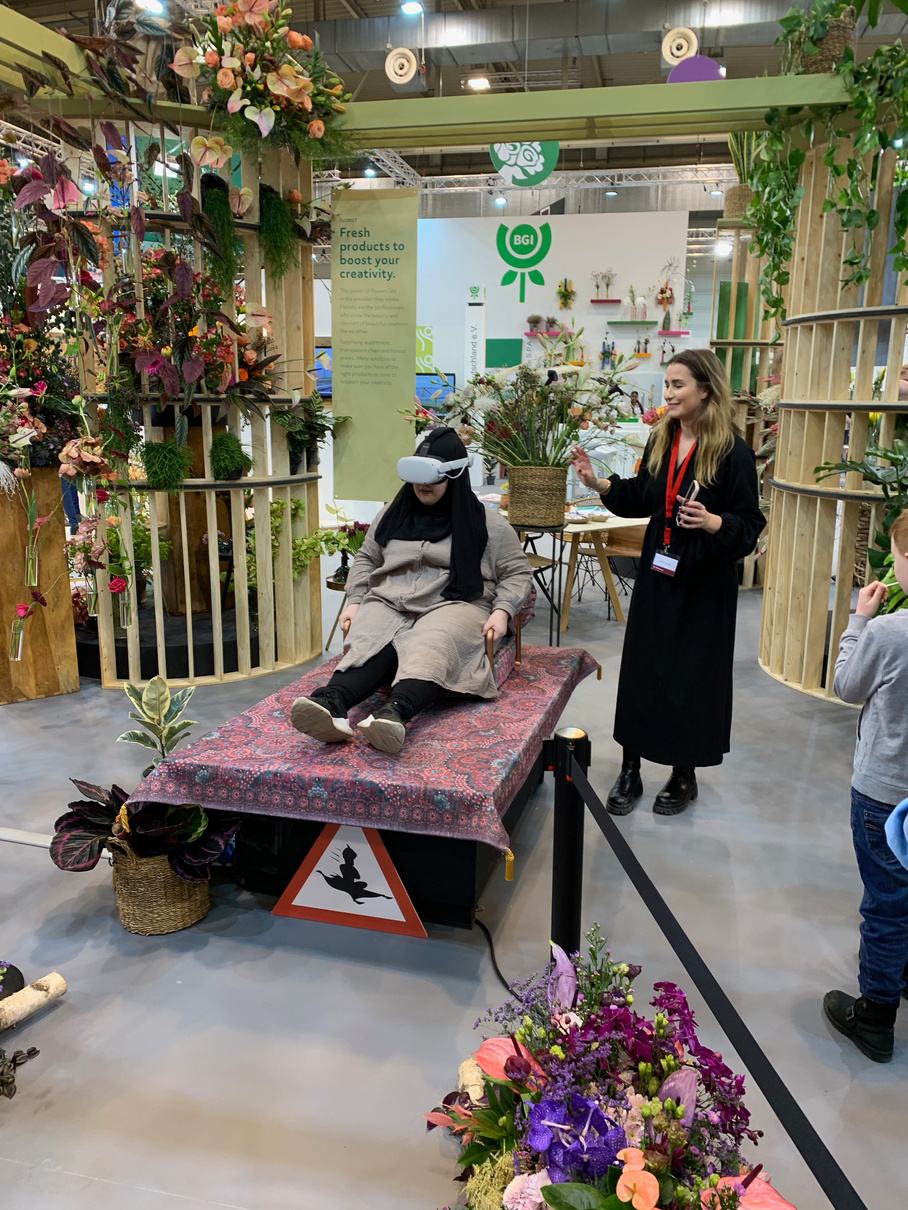A VR Ride on a specially constructed flying carpet to show visitors of a trade show the new Metaverse world “Future Garden” we created for FMGroup!